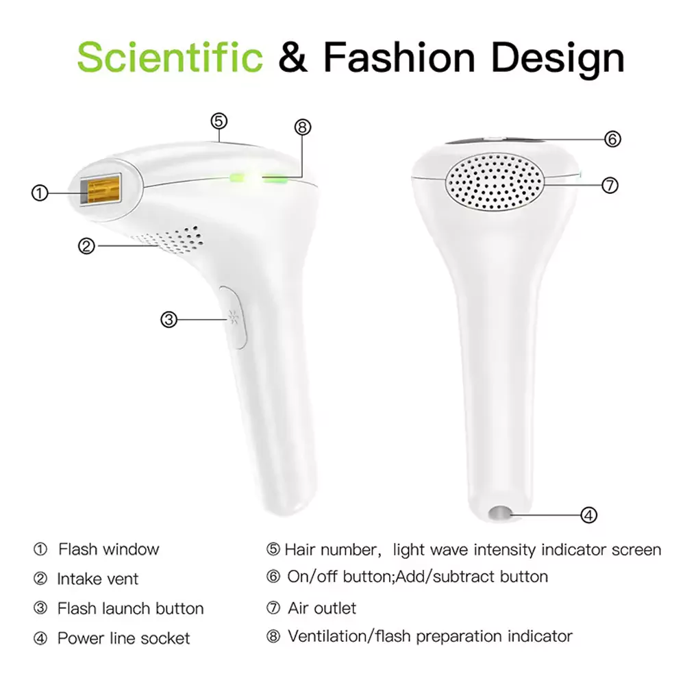 - 5 energy levels and easy to use: This IPL Permanent Hair Removal for women and men has 5 levels; just press the on/off button, adjust the level that suits yourself, and then it can be used. The humanized handle design also makes the hair remover more comfortable to hold.