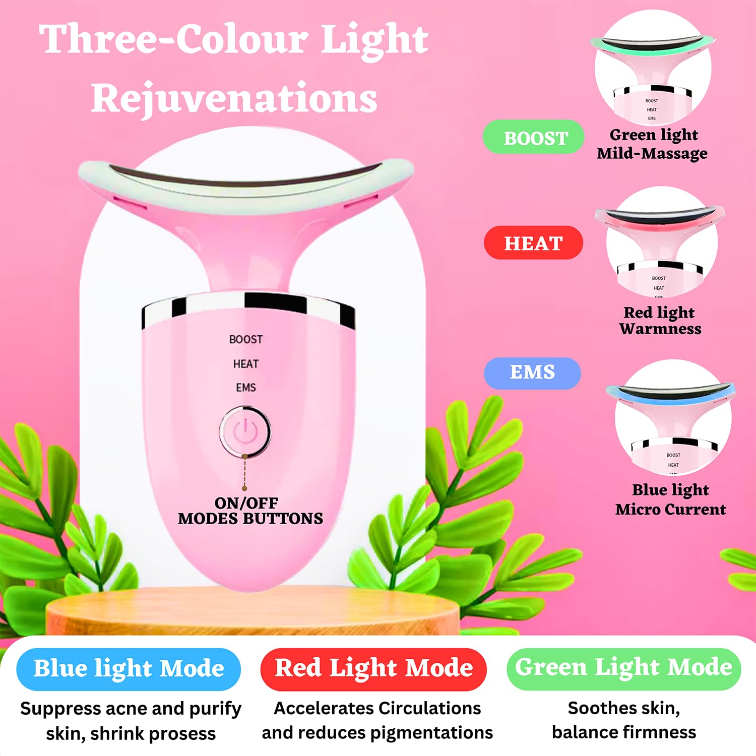 • Blue Light: Suppress acne and purify skin.